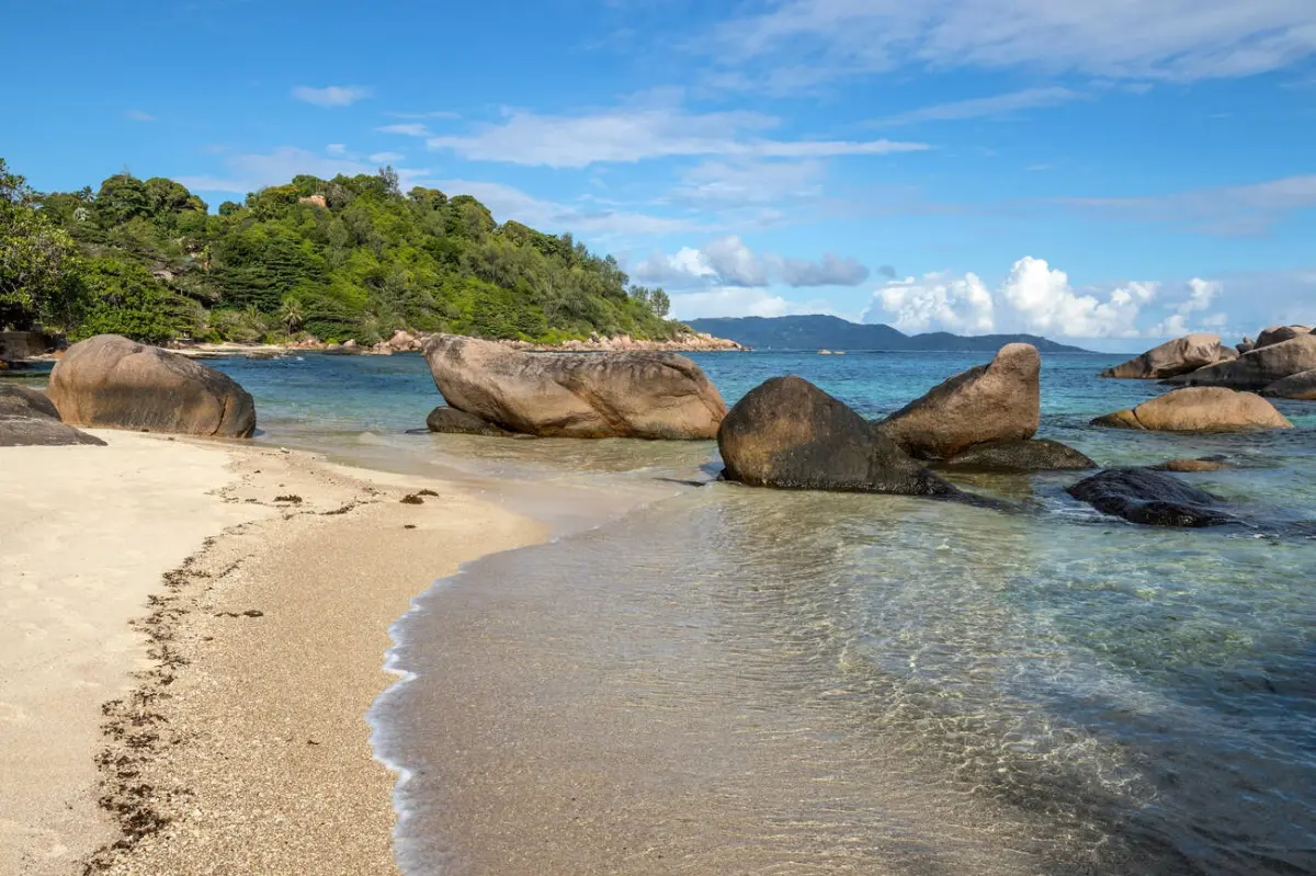 Located on the southern coast of Praslin Island, Anse Consolation is a small, sheltered beach known for its rocky shoreline, shallow tidal pools, and calm waters. Its unique landscape and quiet atmosphere make it a peaceful spot for exploring marine life and enjoying scenic views.