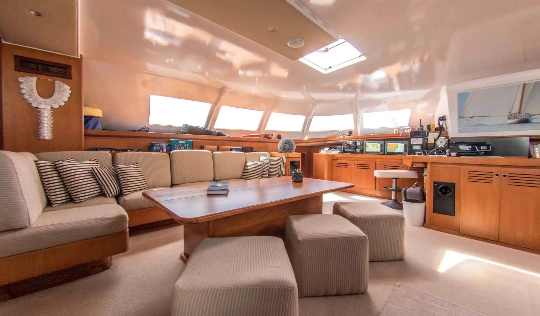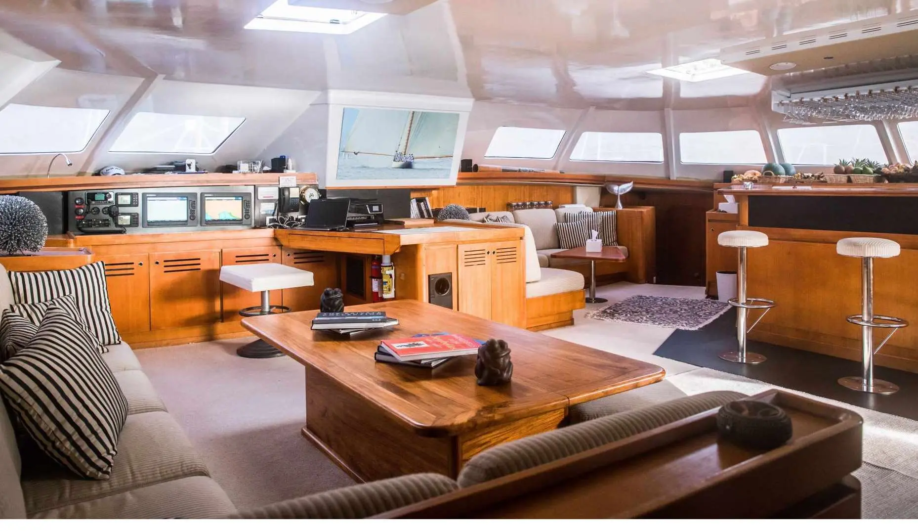 • Expansive Deck Space: With over 2,500 square feet of uncluttered deck space, guests can relax on overstuffed sun cushions, either under the shade of the bimini or in the tropical sun on the foredeck.