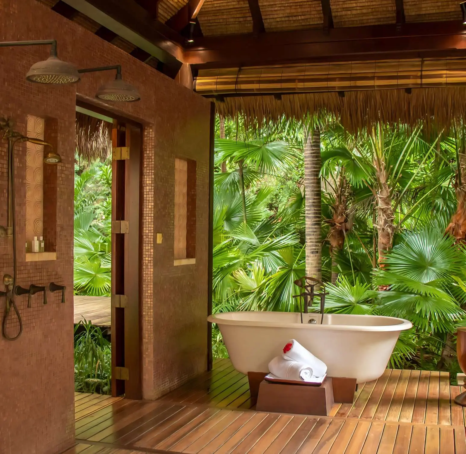• Setting: Situated amidst lush tropical gardens, the spa features open-air pavilions that harmonize seamlessly with the natural surroundings.