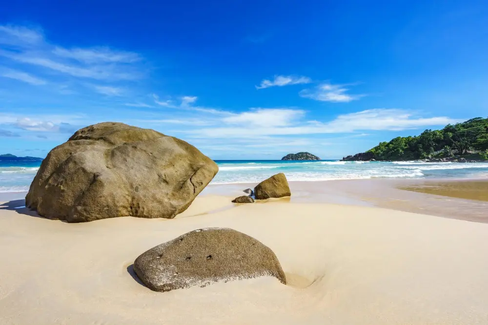 Stretching along the western coast of Mahé Island, Grand Anse is a vast, scenic beach known for its golden sands, powerful waves, and dramatic natural backdrop. Flanked by lush hills and granite boulders, it offers a wild, unspoiled atmosphere ideal for those seeking solitude and breathtaking coastal views.